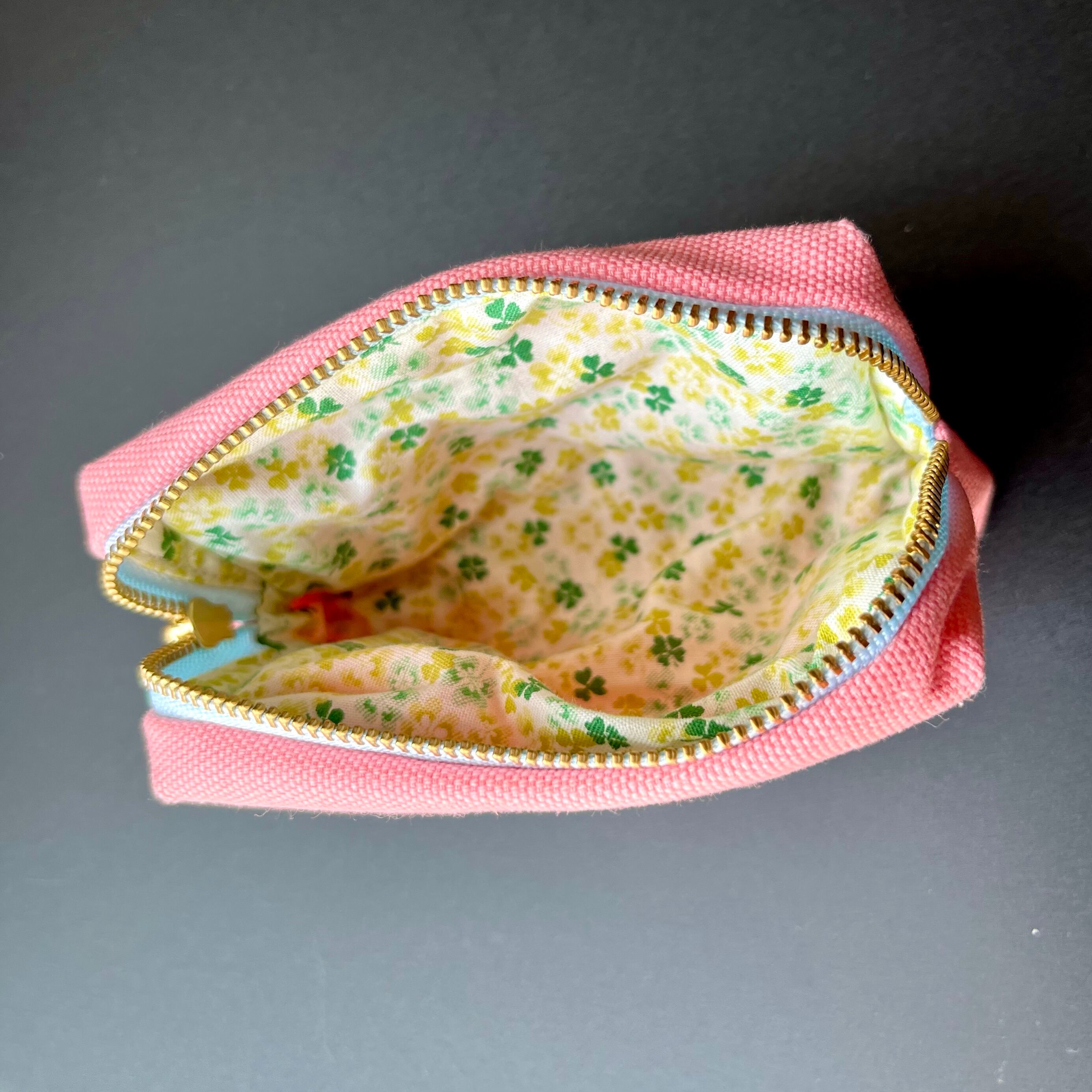 表地には高品質な帆布、裏地はうさちも大好きなクローバー柄のシーチングを使用しています。